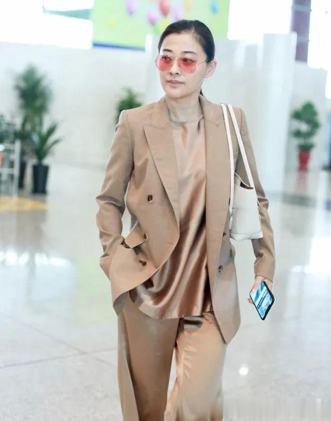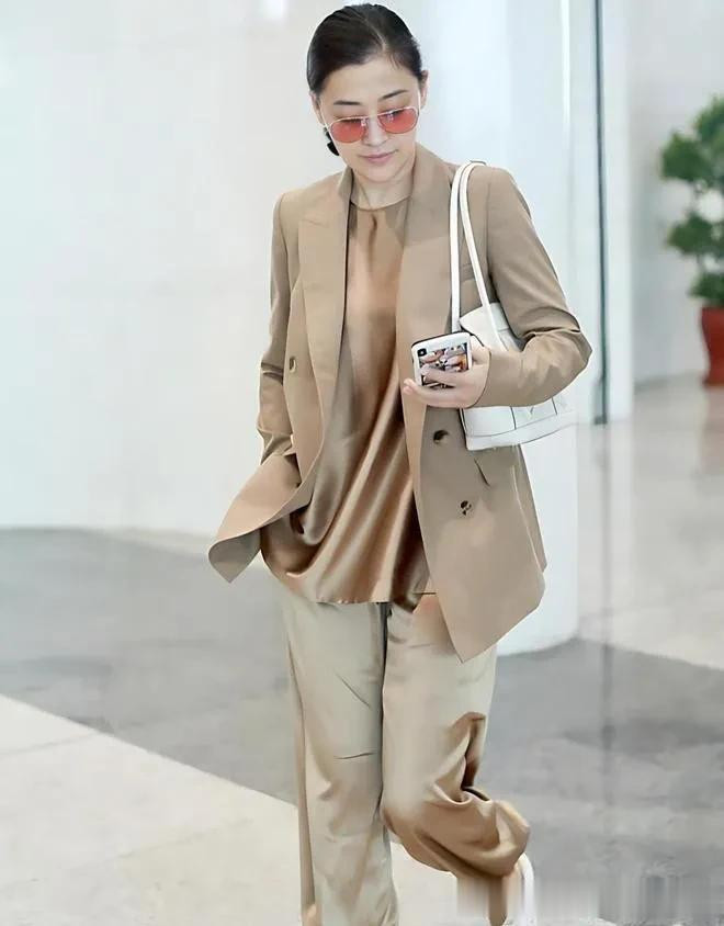 50岁梅婷越来越时髦! 穿美拉德西装+阔腿裤, 简约又高级!