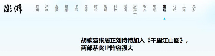 澎湃新闻|胡歌演张居正刘诗诗加入《千里江山图》,两部茅奖IP阵容强大