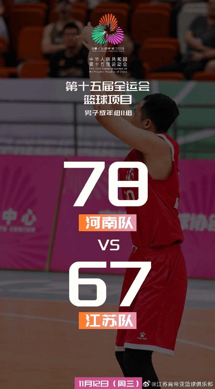 “全场比赛结束,最终江苏队以67比78不敌河南队结束全运会征程。